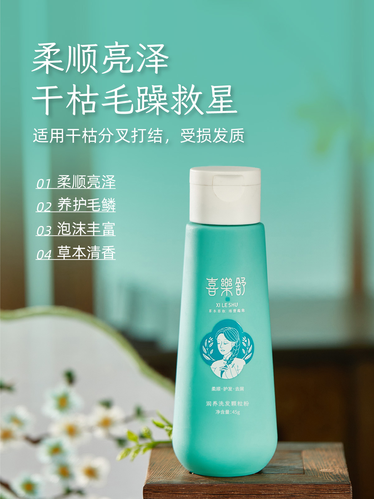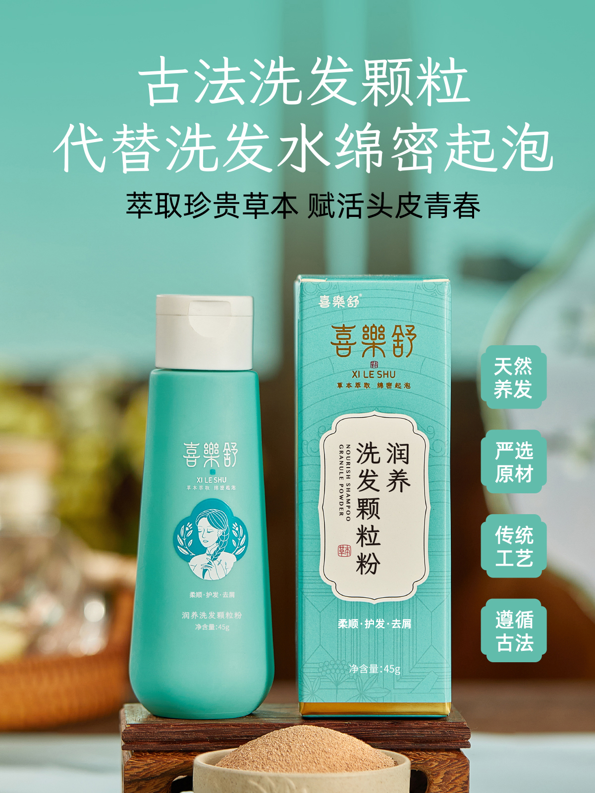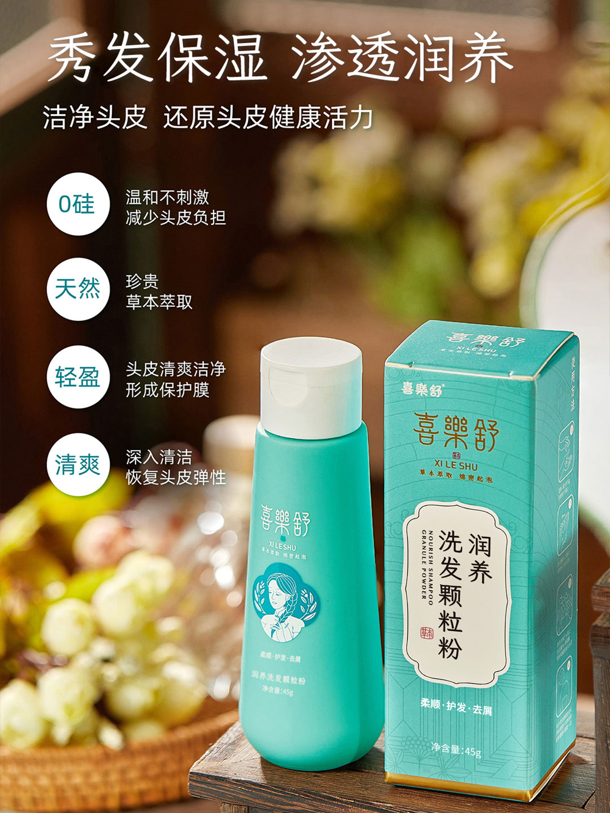 喜乐舒润养洗发粉洗头植物草本护发侧柏叶何首乌清洁清爽去屑柔顺