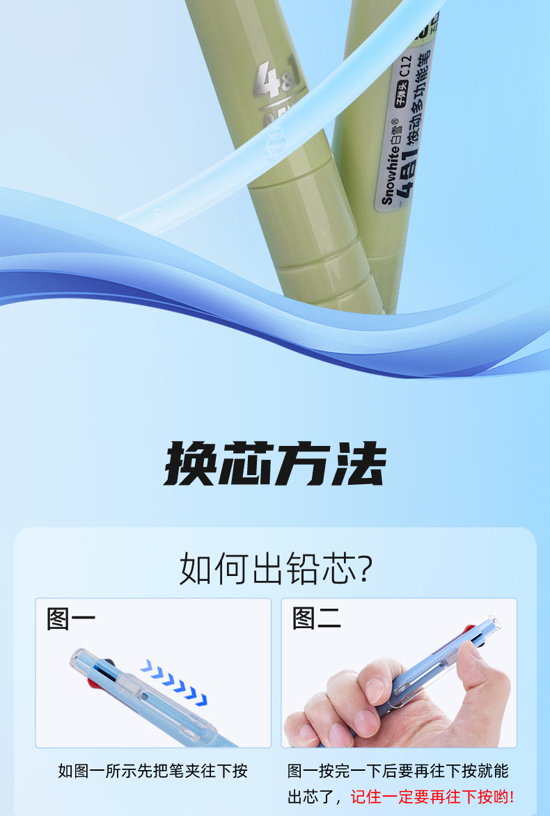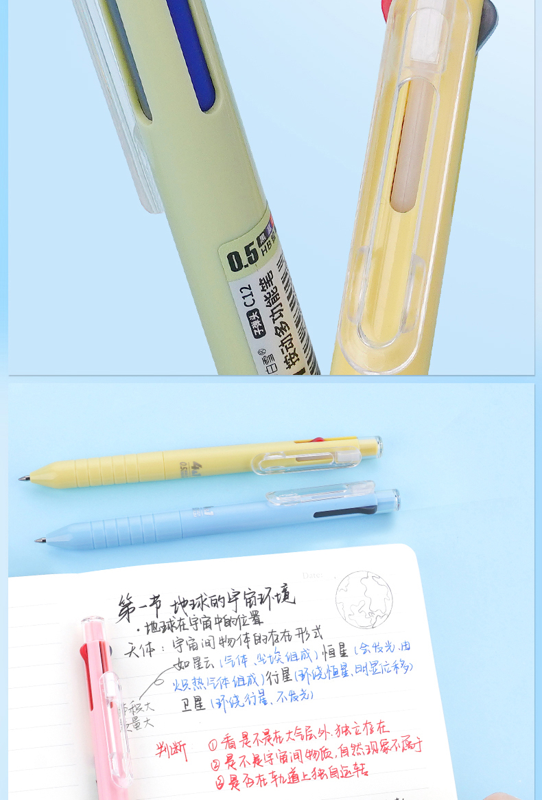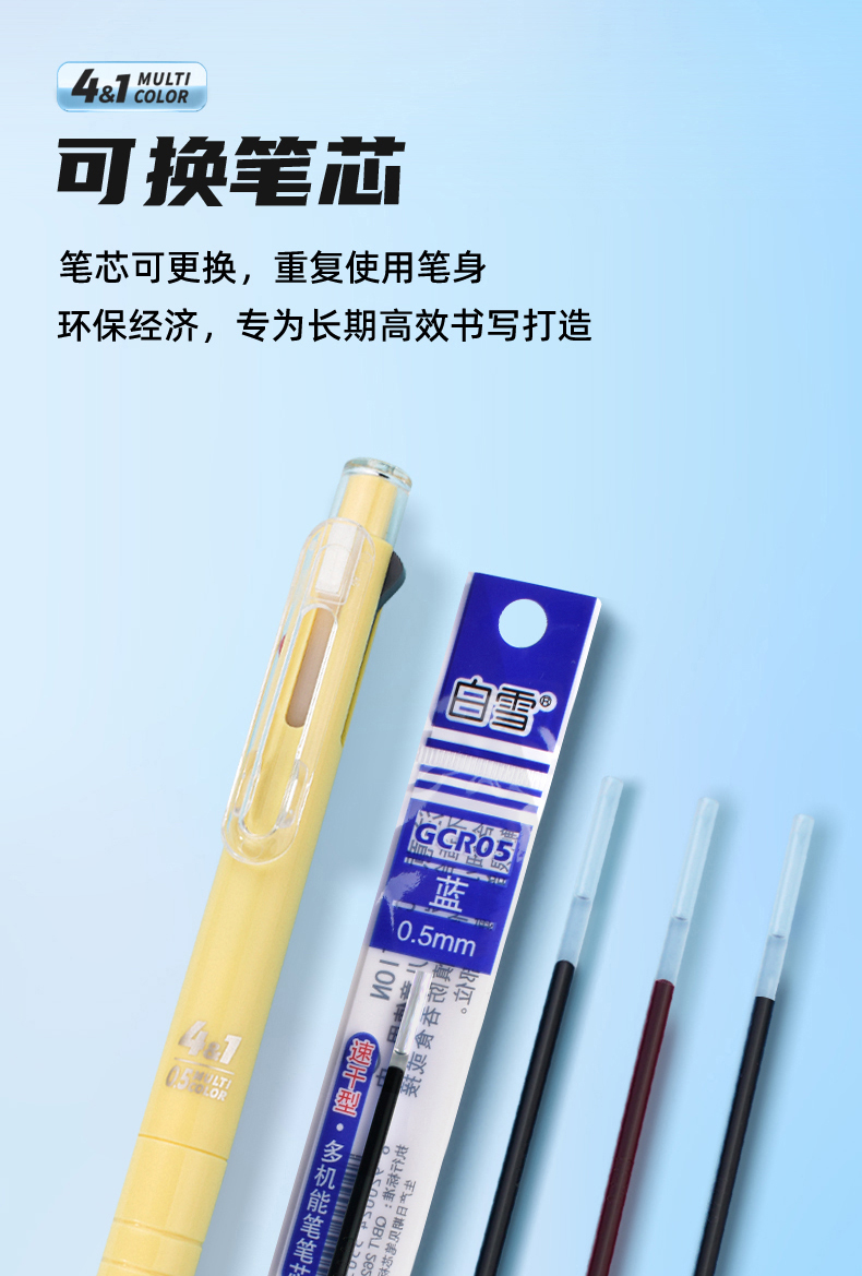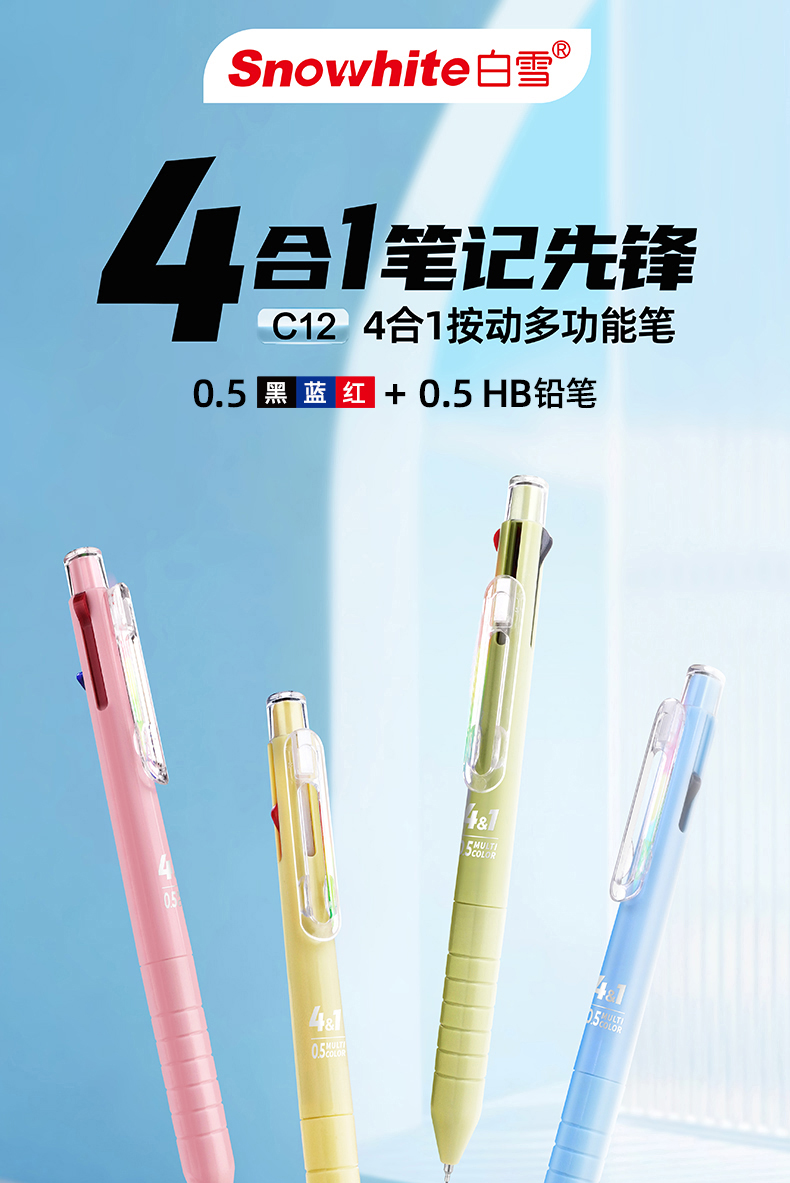 白雪三色笔按动多色合一中性笔高颜值彩色中小学生做笔记专用标记笔多功能模块笔红笔蓝笔错题订正记号笔C12