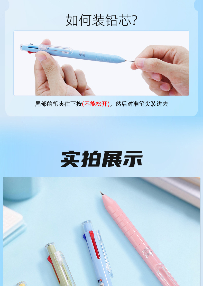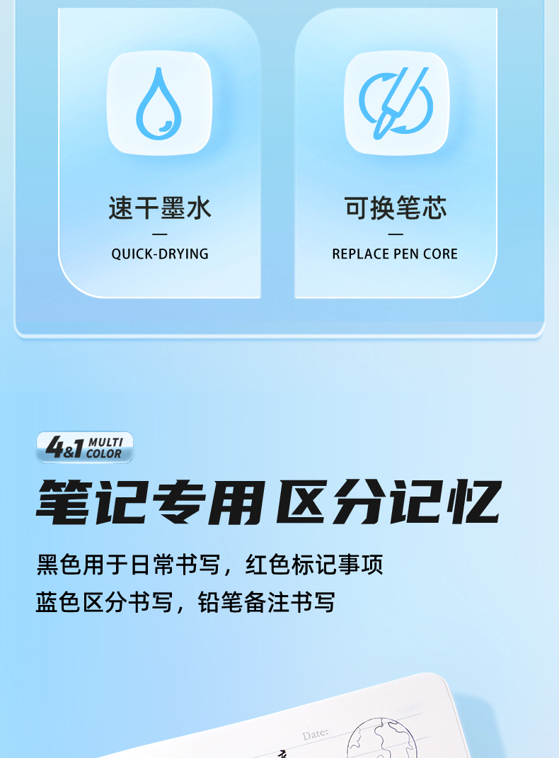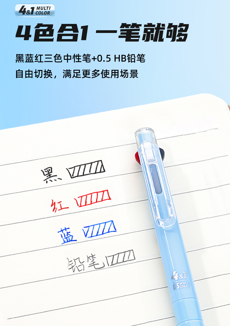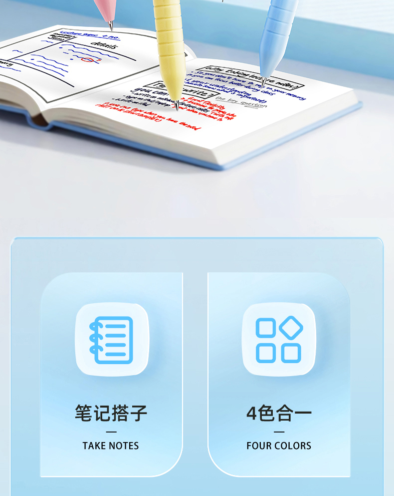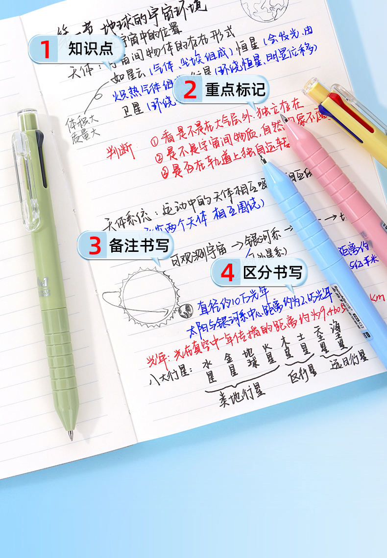 白雪三色笔按动多色合一中性笔高颜值彩色中小学生做笔记专用标记笔多功能模块笔红笔蓝笔错题订正记号笔C12