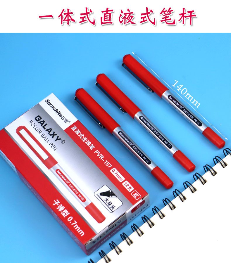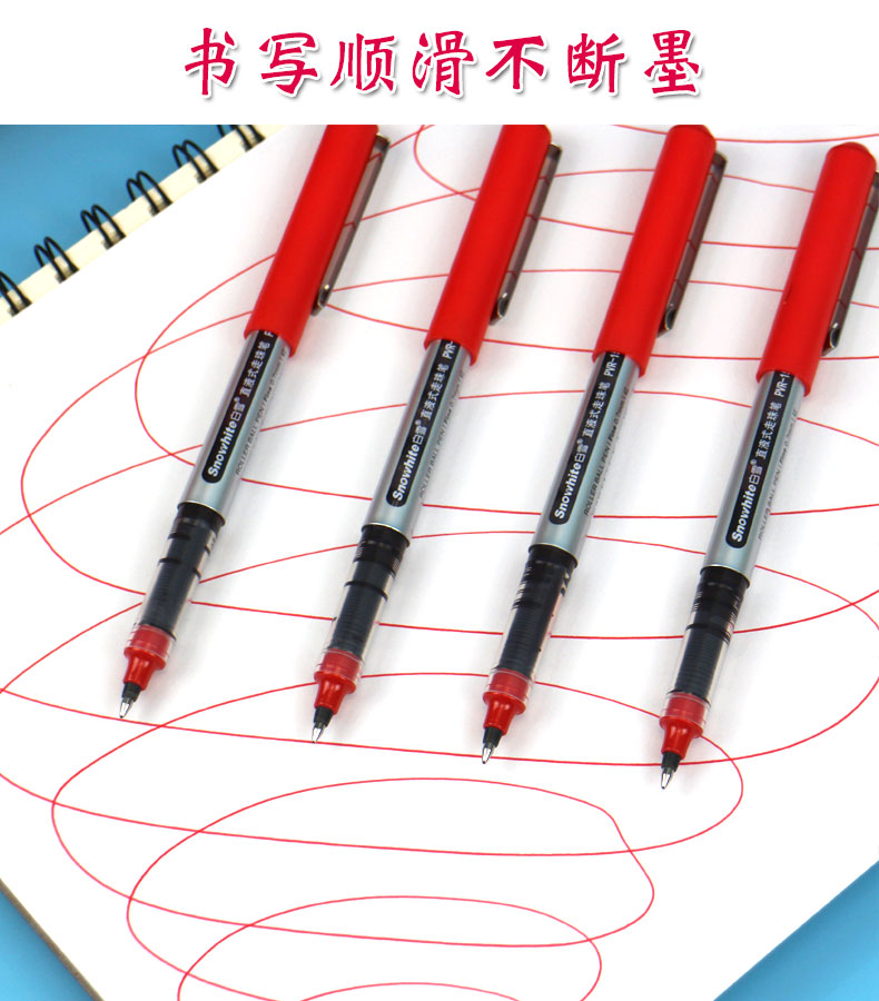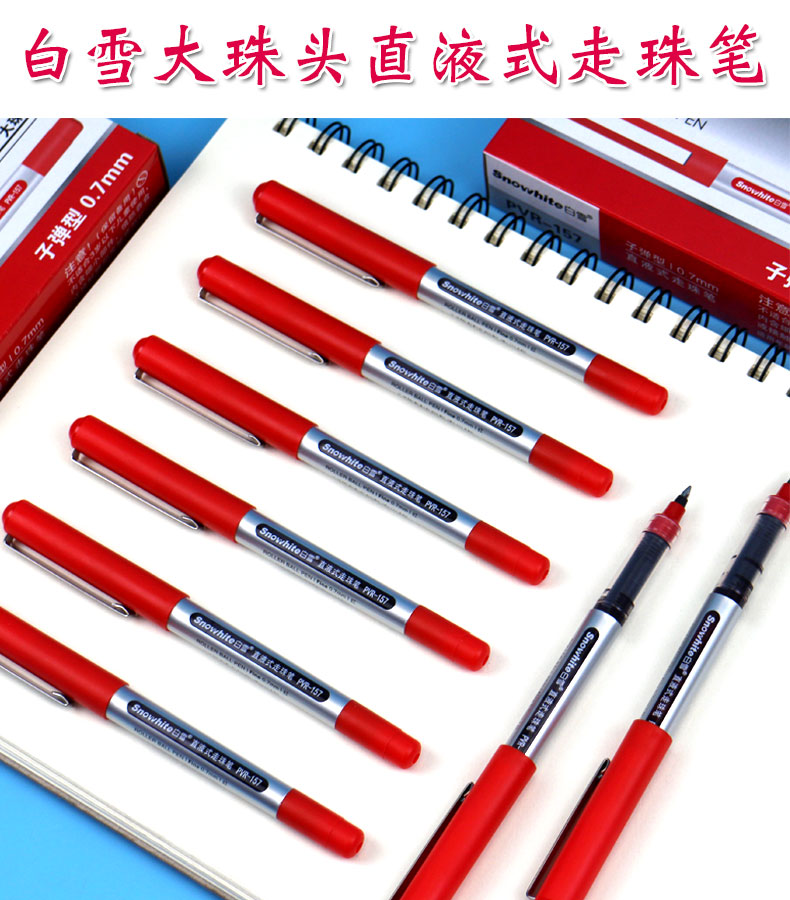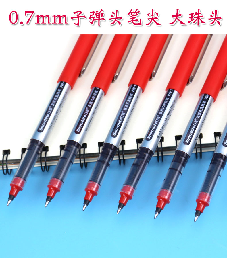 白雪直液式走珠笔红笔老师批改作业0.7大容量速干红色水笔中性笔