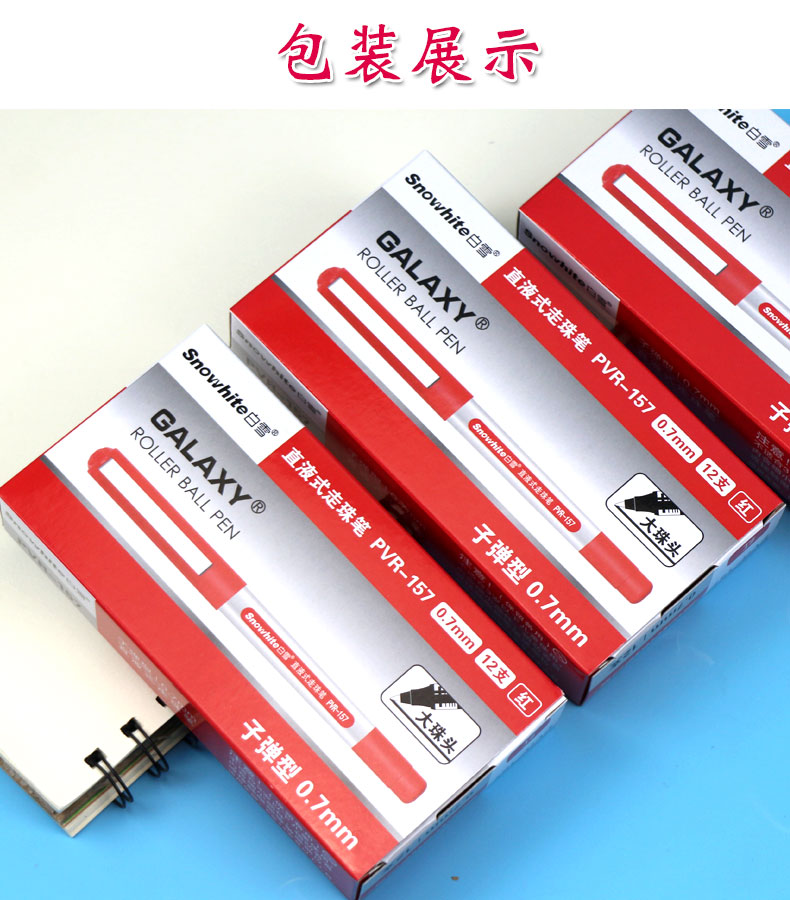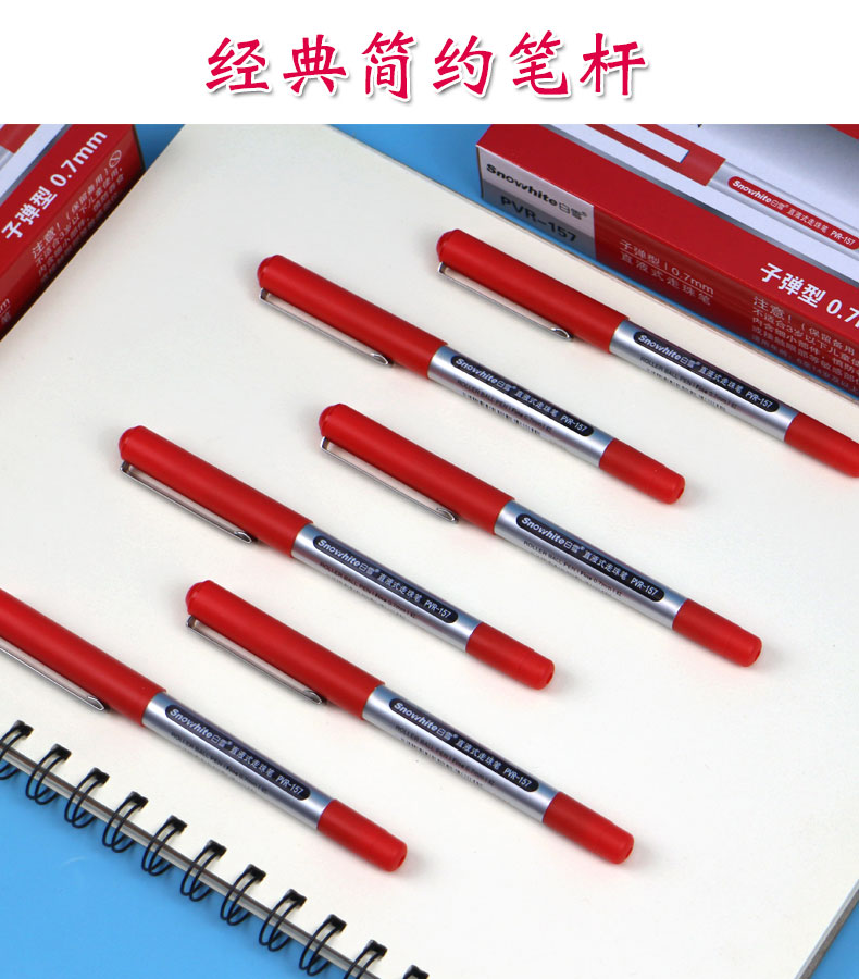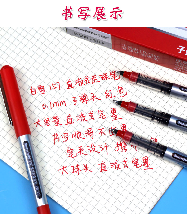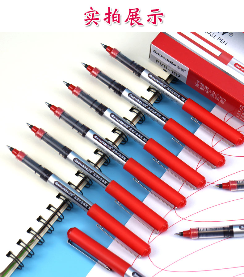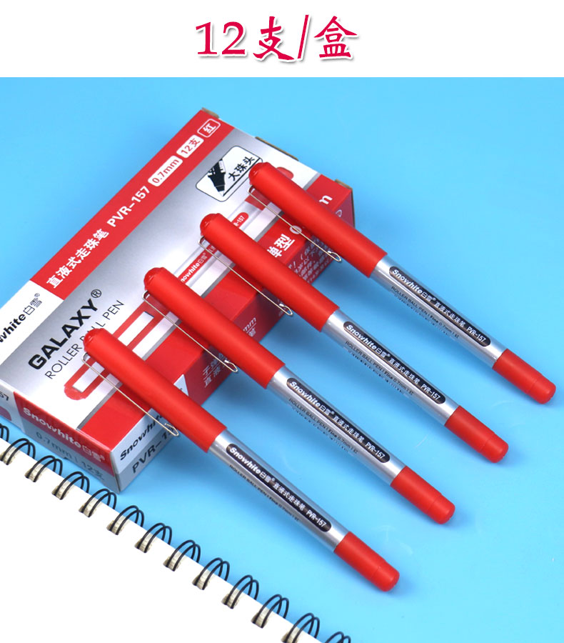 白雪直液式走珠笔红笔老师批改作业0.7大容量速干红色水笔中性笔