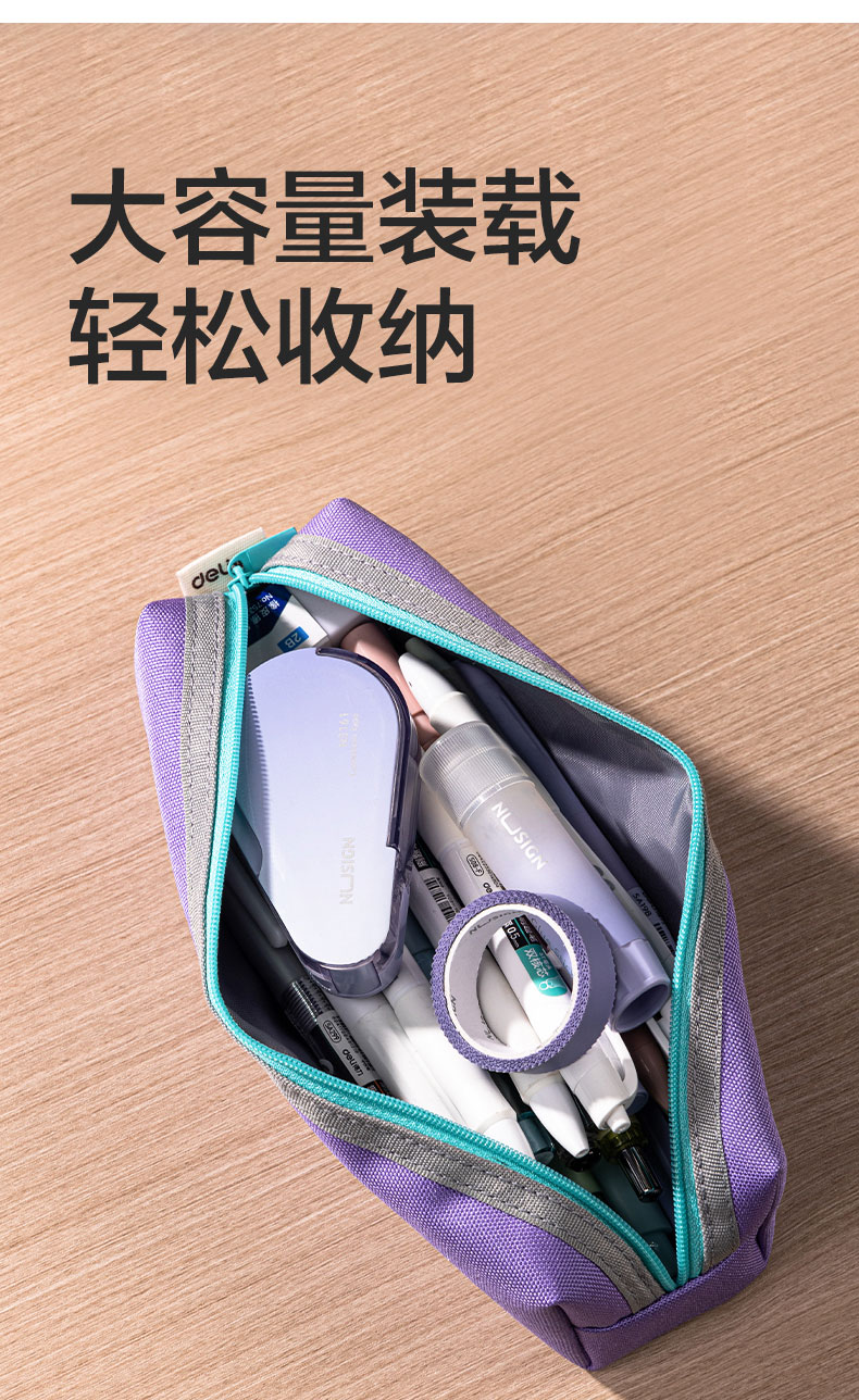 得力笔袋简约ins风小清新单层铅笔盒高中生初中生男孩笔袋文具盒